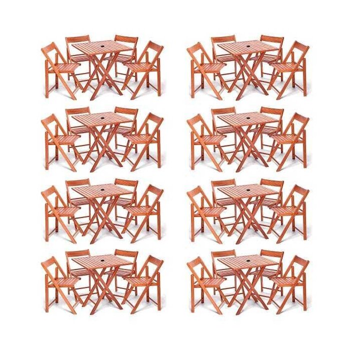 Kit 8 Jogos de Mesas com 4 Cadeiras de Madeira Dobrável Gourmet Premium Luxo Mogno com Suporte para Ombrelone