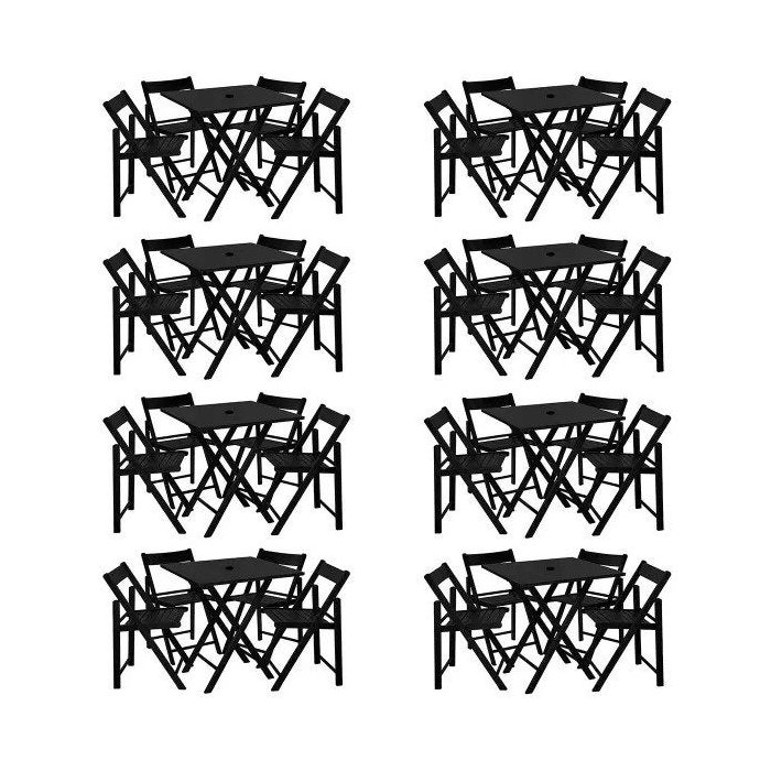 Kit 8 Jogos Mesa Com 4 Cadeiras De Maderia Dobravel Classic Beerblack Com Suporte Para Ombrelone