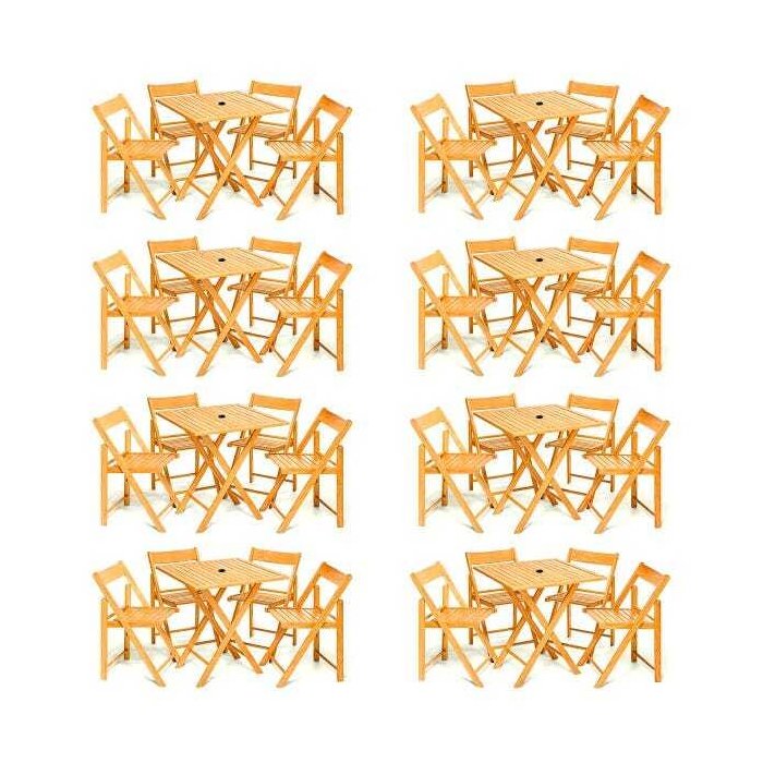 Kit 8 Jogos Mesa com 4 Cairas Maira Dobravel Gourmet Beer Natural com Suporte para Ombrelone