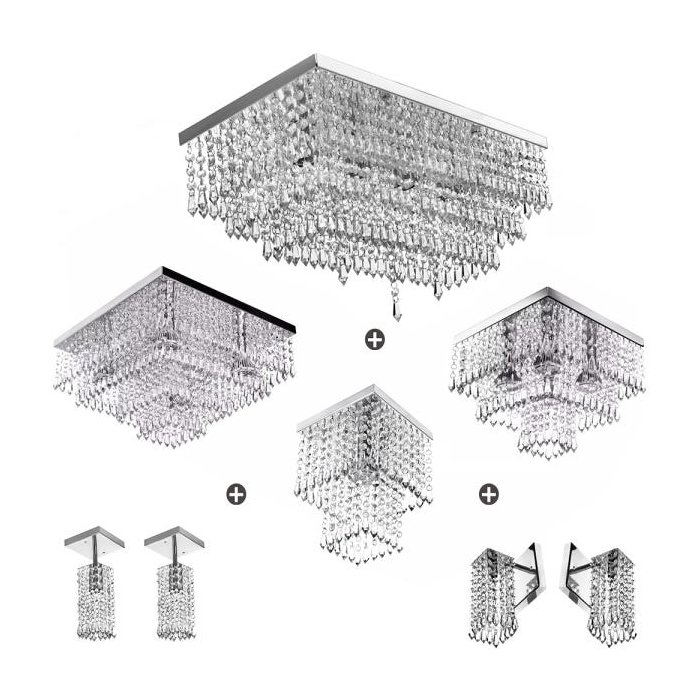 Kit 8 Peças Lustre Luminária Plafon Arandela Em Cristal Acr.