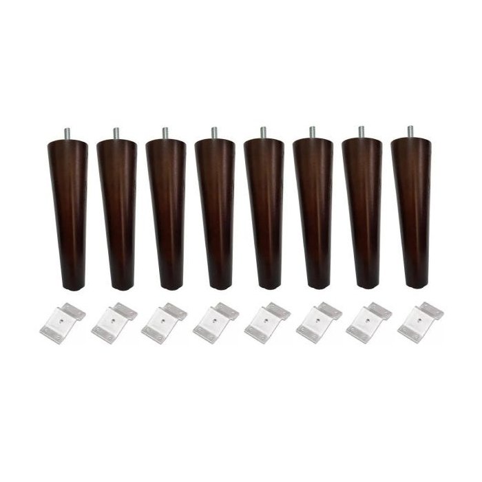 Kit 8 Pés Palito 10cm Sofá Mesa + Suporte Chapa Inclinada - Marrom Escuro