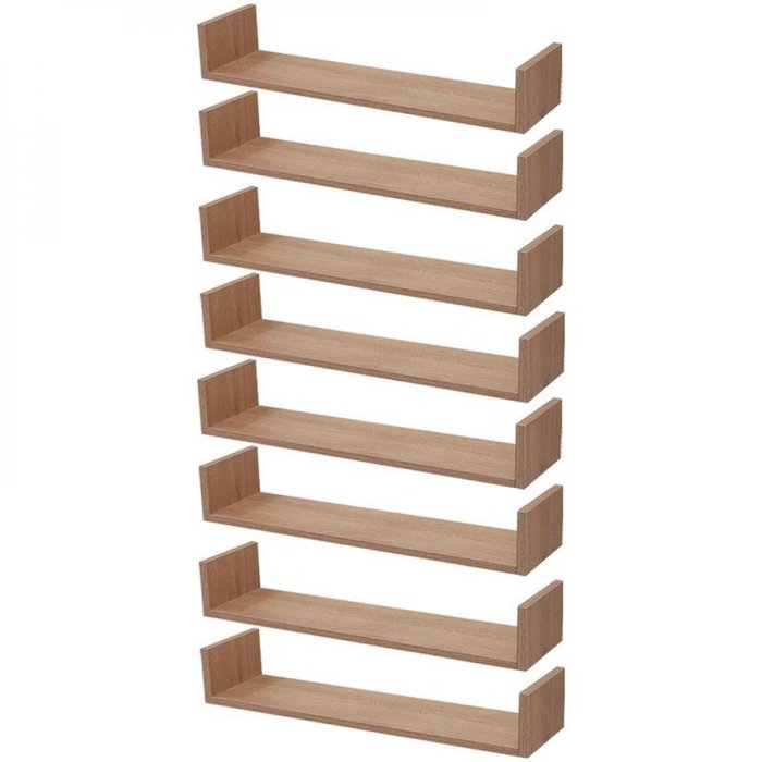Kit 8 Prateleiras U 50 X 25cm Carvalho Suporte Invisível Bege