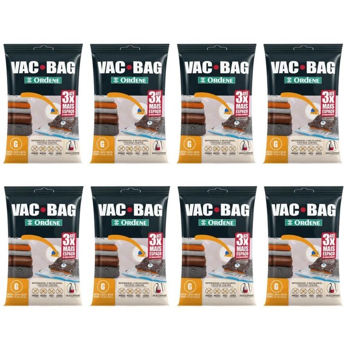 O kit 8 sacos a vácuo para roupas é a solução ideal para quem busca praticidade e organização no armário. Com tamanho grande e impermeáveis, esses sacos garantem a proteção das suas roupas contra poeira, umidade e odores, mantendo tudo bem conservado. Perfeitos para otimizar o espaço, esses sacos são eficientes e reduzem significativamente o volume das roupas. Além disso, a resistência do material garante durabilidade, sendo ideais para armazenar peças de roupa, cobertores, edredons, e outros itens volumosos. Organize seu armário com mais praticidade e aproveite todo o potencial do seu espaço com os sacos a vácuo Vac Bag.