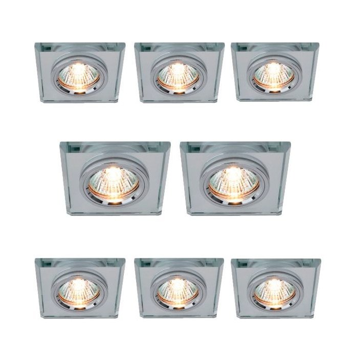 Kit 8 Spot Cristal Quadrado Embutir Gesso Espelhado Gu10 Mr11 Quarto Zan03