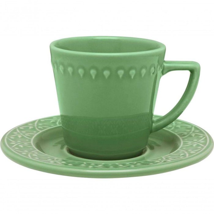 Kit 8 Xícaras Com Pires Mendi Sálvia Oxford Cerâmica 200ml