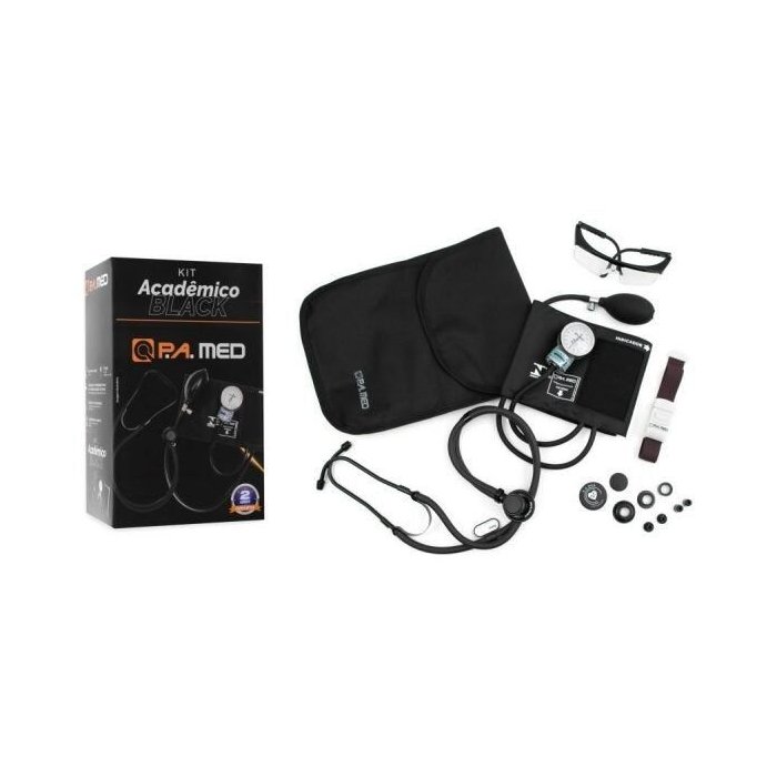 Kit Acadêmico Black (Ap. Pressão Art. Adulto Nylon Fecho de Contato Estetoscópio Rappaport BLACK) – P.A. MED - KPA704