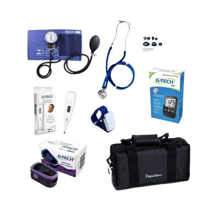 Kit Acadêmico Premium Azul + Kit Medidor de Glicose Free Lite + Oxímetro Digital Oled - G-tech