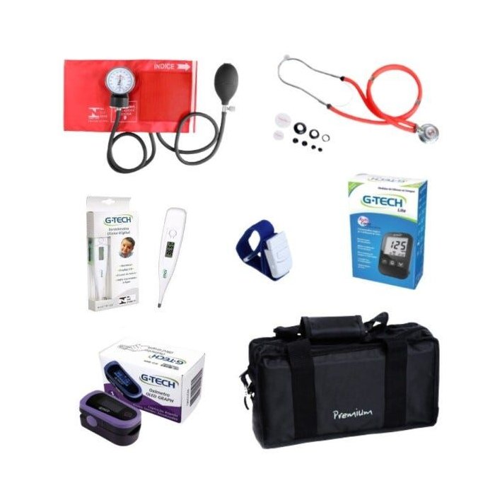 Kit Acadêmico Premium Vermelho + Kit Medidor de Glicose Free Lite + Oxímetro Digital Oled - G-tech
