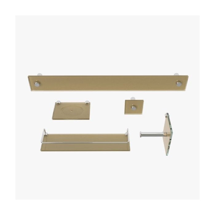 1 porta toalha de banho de 60 x 7 cm, com 2 prolongadores de 2,5 cm de diâmetro e 7 cm de comprimento.
