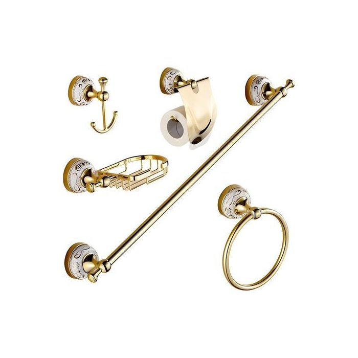 Kit Banheiro Dourado Porcelana Argola Toalheiro Suporte Luxo