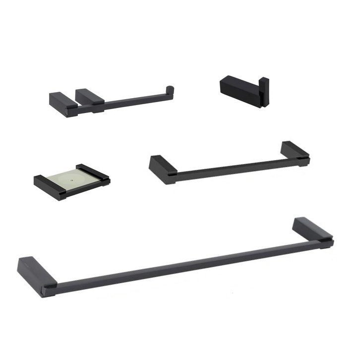Kit Acessórios Banheiro 5 Peças Quartzo Preto Brilhante Fani
