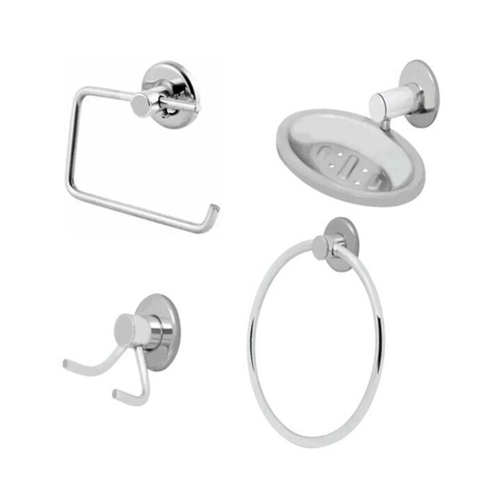 Itens na caixa: Cabide, saboneteira, papeleira, porta toalha argola, porta toalha