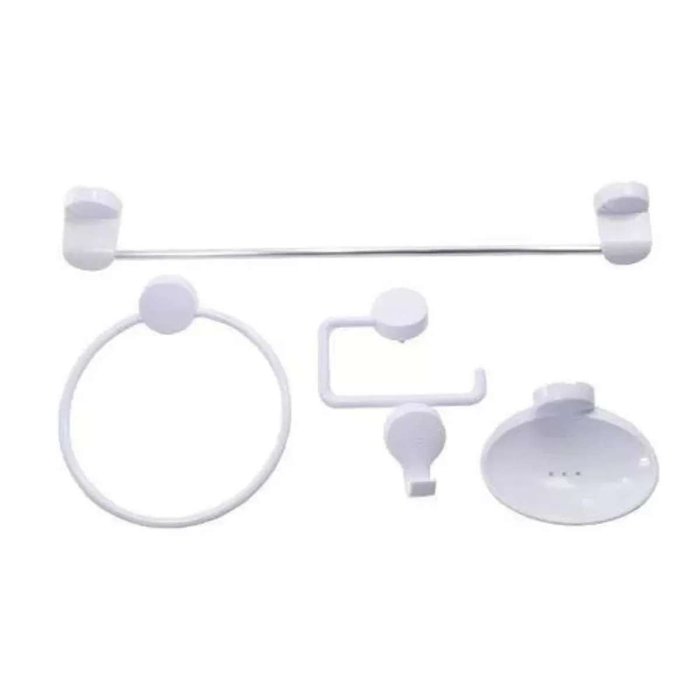 Um kit lindo e que vai se encaixar com seu banheiro, composto por 5 peças, 1 Cabideiro, 1 Saboneteira, Toalheiro de Rosto, 1 Papeleira e 1 Toalheiro de Banho, sendo fácil e prático para montar, podendo ser colocado por qualquer pessoa.