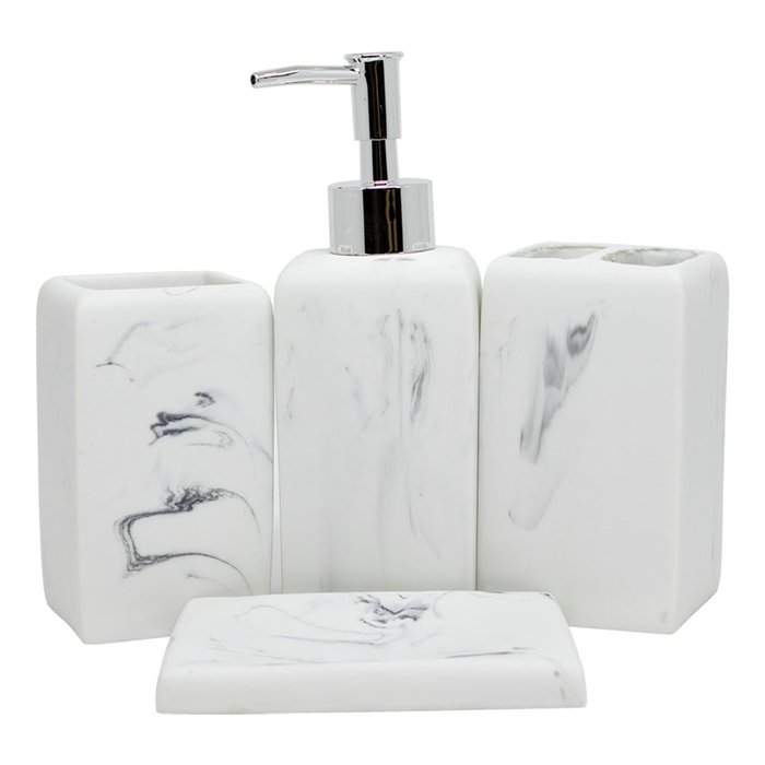 KIT ACESSÓRIOS DE BANHEIRO LAVABO 4 PEÇAS RESINA MARMORIZADO:PD272
