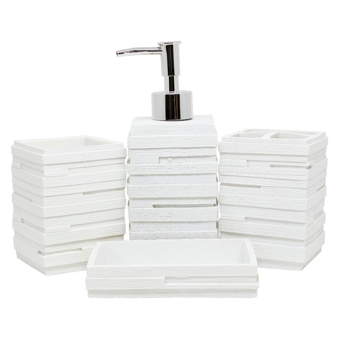 KIT ACESSÓRIOS DE BANHEIRO LAVABO 4 PEÇAS RESINA PEDRAS:Branco Branco