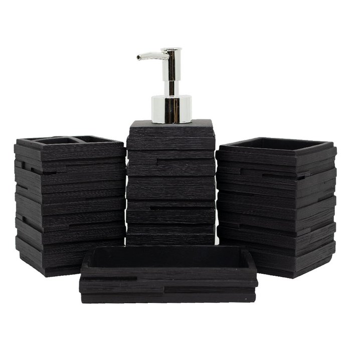 KIT ACESSÓRIOS DE BANHEIRO LAVABO 4 PEÇAS RESINA PEDRAS:Preto Preto