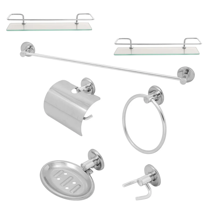 Kit Acessórios P/ Banheiro Aço Inox 7 Peças Reto Cromado cromado