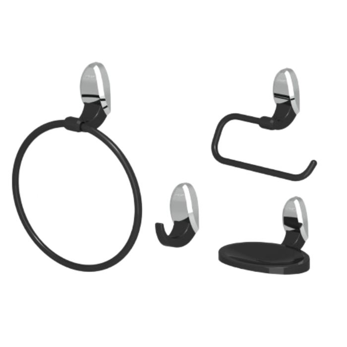 Kit Acessórios para Banheiro 4 Peças Linha Delicato Cor Preto e Cromado Durín Preto e Cromado