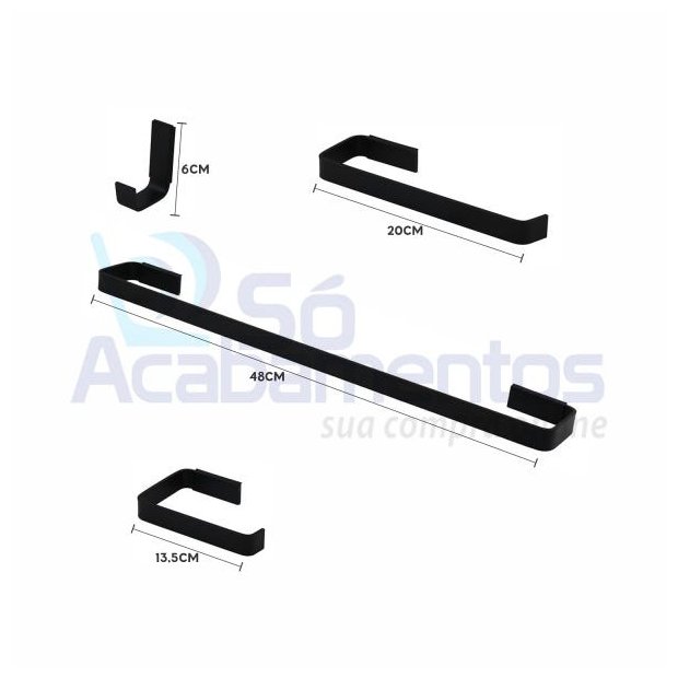 <p>KIT ACESSÓRIOS PARA BANHEIRO 5 PEçAS PRETO FOSCO BLACK AçO INOX QUADRADO</p>