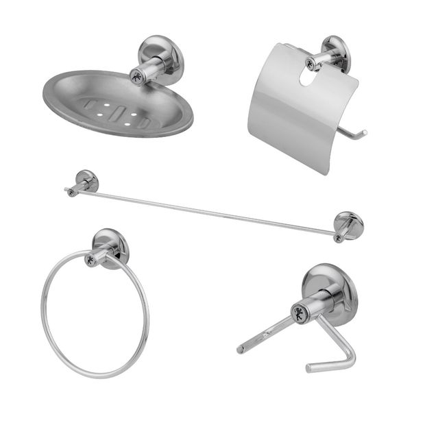 Kit Acessórios Para Banheiro 5 Peças Aço 430 Alumínio Stander - 17300 Leão Leão Metais Cromado