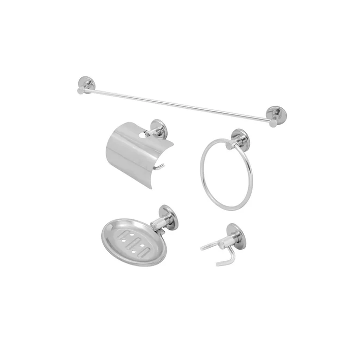 Kit Acessórios Para Banheiro 5 Peças Aço Inox