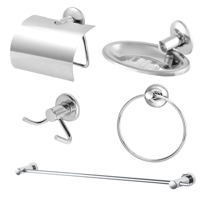 Kit Acessórios Para Banheiro 5 Peças Aço Inox / Alumínio:Cromado