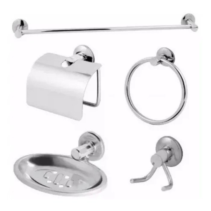 | Peças incluídas | 01 Porta Toalha de banho, 01 Porta Toalha de Rosto, 01 Saboneteira, 01 Papeleira e 01 Cabide duplo |
