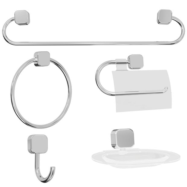 Kit Acessórios Para Banheiro 5 Peças Japi Samba Quadrado Cromado JKSQC cromado
