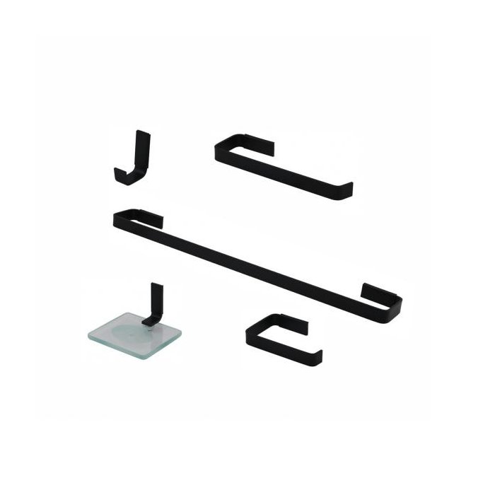 KIT AcessórioS PARA BANHEIRO 5 PEçAS PRETO FOSCO BLACK AçO INOX QUADRADO
