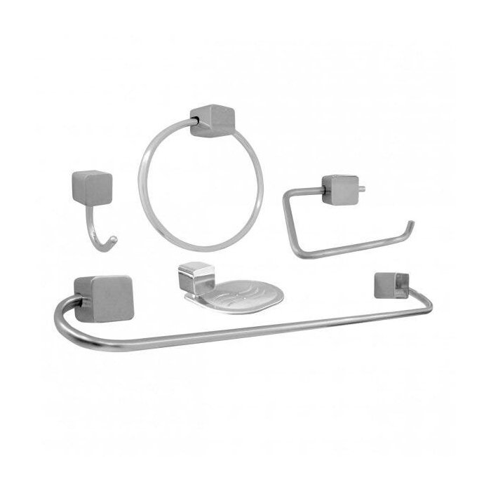 Kit Composto por 5 Peças: 1 Porta Toalhas Bastão, 1 Porta Toalhas Argola, 1 Cabide, 1 Papeleira e 1 Saboneteira