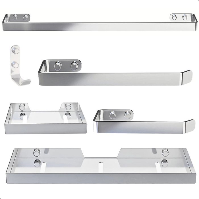 As peças do kit possuem um design clean e sofisticado, suas barras são de alumínio maciço, as grades do porta shampoo e sabonetes são de aço inox, ambos com acabamento em pintura eletrostática epóxi preto fosco garantindo maior durabilidade e resistência, não havendo problemas com ferrugem.