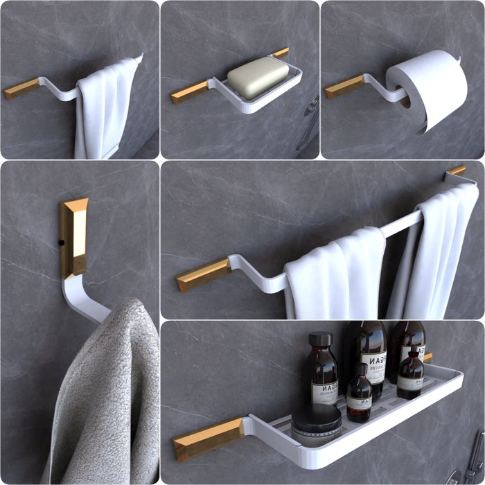 Kit Acessórios Para Banheiro Branco e Gold Empire 6 peças Branco