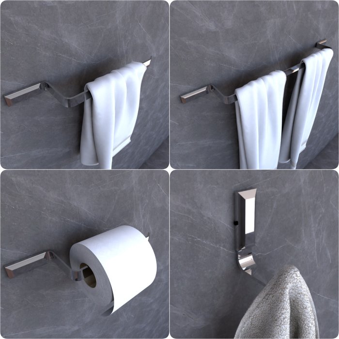Kit Acessórios Para Banheiro Cromado Empire 4 peças Prateado