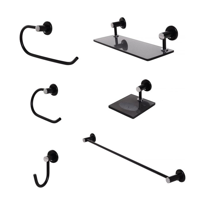 Kit Acessórios Para Banheiro Luxo 6 Peças Moscou - Preto