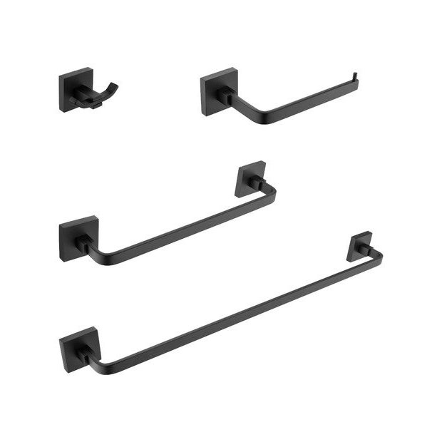 Kit de acessório para banheiro 4 peças: cabide, porta papel higiênico, porta toalha de rosto e porta toalheiro de banho barra simples.