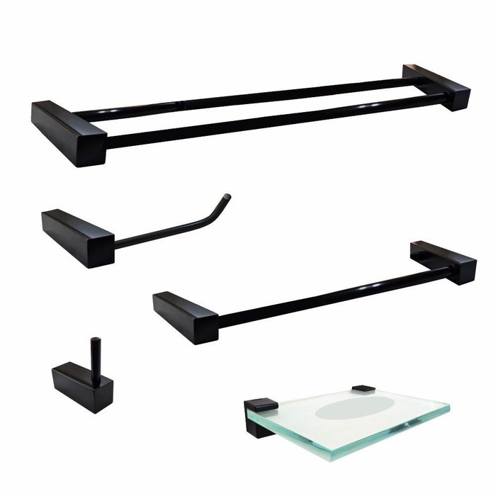 Kit Acessórios para Banheiro Quadrado 5 Peças Preto FoscoLindos kits de acessórios para banheiro em metal preto acetinado, inovando seu ambiente com um design em linhas retas acompanhando a tendência do mundo moderno. Fácil de instalar, e uma variedade de modelos. A Grego Metal levando funcionalidade e praticidade ao seu cotidiano, com preços acessíveis direto de fábrica...
