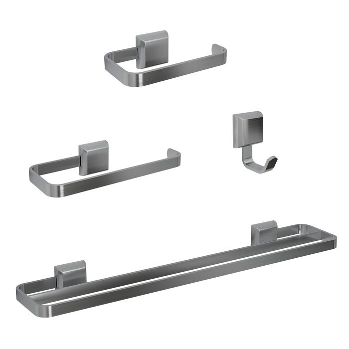Kit Acessórios para Banheiros 4 Peças Prata Lavabo com Toalheiro Duplo