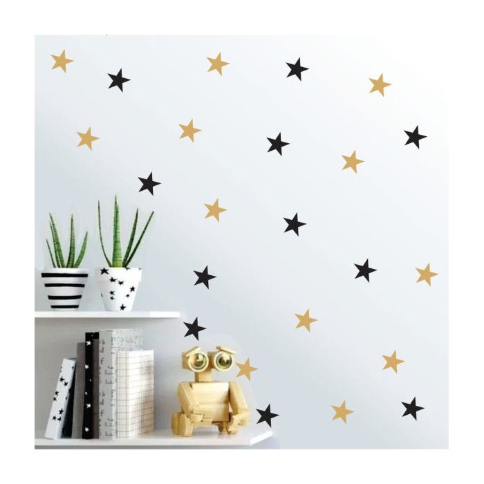 Kit Adesivo de Estrelas - Kit com 200 estrelinhas Douradas e Pretas
