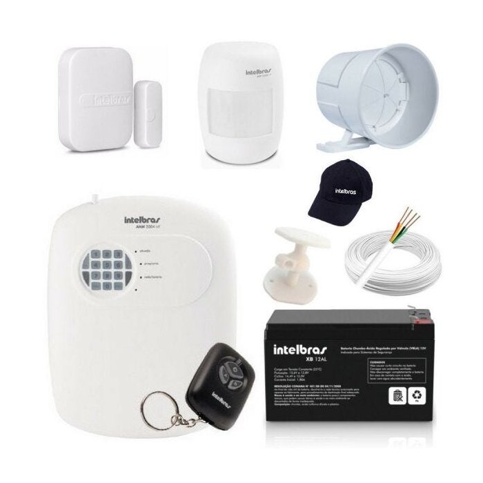 Conteudo do Kit: 1 Unidade - Central de Alarme Não Monitorada Anm 2008 MF ( 1 Controle incluso ) - Intelbras 1 Unidade - Sensor Magnetico Sem Fio Xas 4010 Smart ( Para Portas e Janelas ) - Intelbras 1 Unidade - Sensor Infravermelho Com Fio IVP 3000 CF ( Para Ambiente Interno ) - Intelbras 1 Unidade - Bateria Selada Para Segurança 12V/6,0AH XB 12AL - Intelbras 1 Unidade - Sirene 2 tons Branca ou Preta 1 Unidade - 10 Metros de Cabo 4 Vias Para Alarme - Megatron 1 Unidade - Suporte Articulado Para Sensor IVP - Security Parts 1 Unidade Boné em Brim ou Microfibra com regulador em velcro Intelbras. Modelo: ANM 2008 MF Descrição: A central de alarme ANM 2008 MF é compacta e de fácil programação, possui 6 memórias para telefones, função Pânico, zona 24 horas, proteção contra curto-circuito ou inversão de polaridade e memória EEPROM. Pode ser conectada a vários tipos de sensores, como de abertura e infravermelho. Fonte chaveada Full Range de 90-265 VAC (automática) Receptor incorporado e controle remoto incluso Permite a ativação e desativação de zona ou grupo de zonas de forma independente (permissões das senhas) Recepção de até 48 dispositivos sem fio (sensores/controle) Carregador de bateria inteligente com proteção contra curto e inversão de polaridade da bateria Discadora para 6 números telefônicos Quantidade programável de ligações telefônicas Autoativação programável por inatividade Discagem por DTMF (tom) Barramento para instalação de teclado e/ou receptores adicionais Capacidade para 9 senhas programáveis de até 4 dígitos Bypass - desativação de um ou mais setores temporariamente, via teclado Modo teste dos sensores e da discadora Sistema de zona inteligente programável Função Pânico pelo controle remoto Pânico silencioso pelo teclado Detecção de curto e corte da sirene Detecção de corte da linha telefônica Detecção de bateria baixa, ausente, invertida e/ou em curto Cancelamento automático de zona Memória não volátil Tempo de sirene programável em minutos Tempo de entrada e saída programáveis Desabilitação de sinalização de sirene (bipe) no arme/desarme Teclas de indicação luminosas