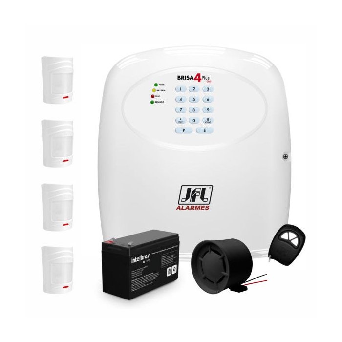Kit Alarme Central Brisa 4 Sinal + 4 Sensores sem Fio Jfl