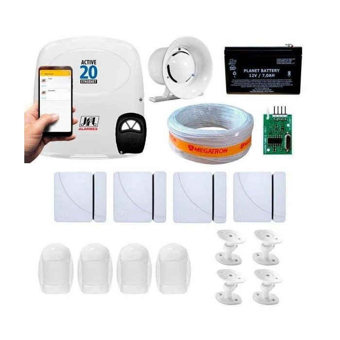 Kit Alarme JFL 8 Sensores, Active 20 Ethernet, Aplicativo Celular