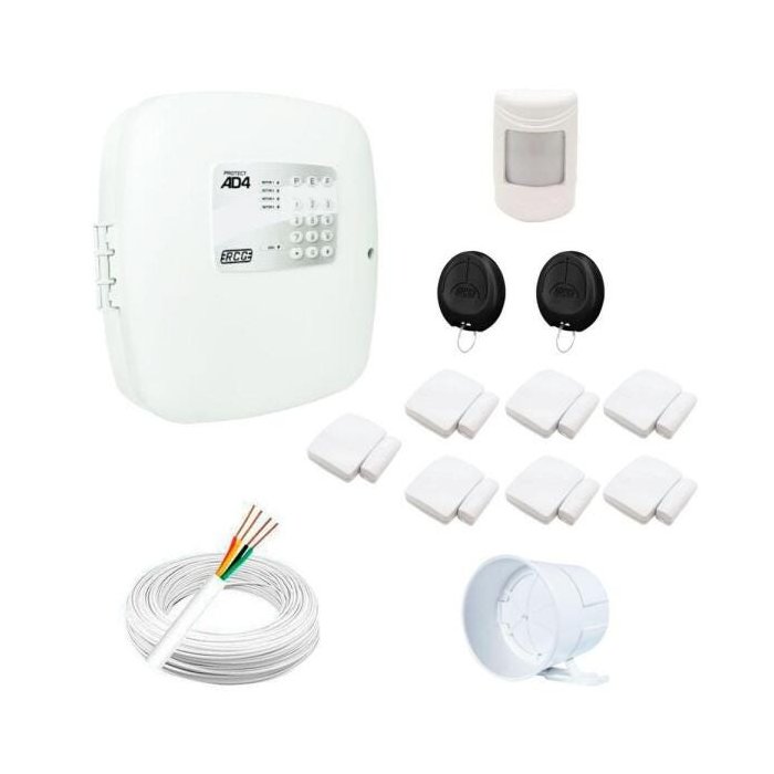 Kit Alarme Residencial 8 Sensores sem fio, 2 Controles Remoto, Central AD4 Soft EC4 RCG