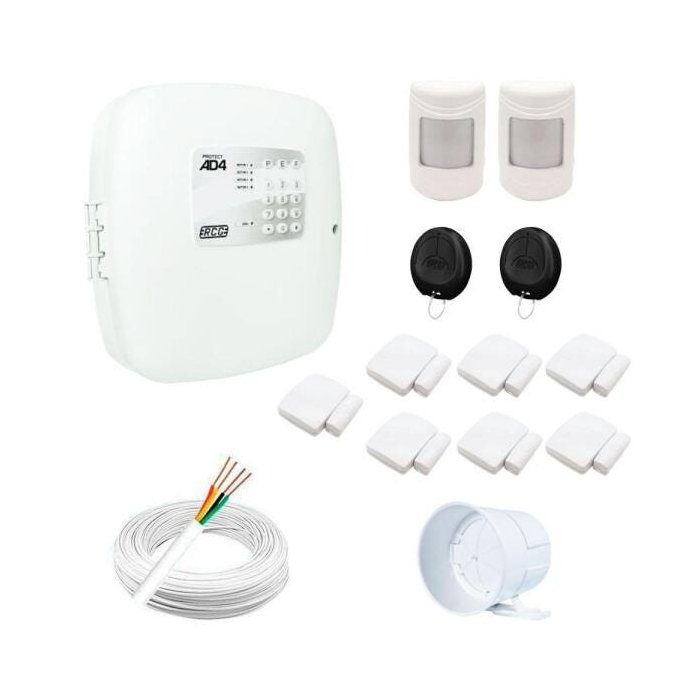 Kit Alarme Residencial 9 Sensores sem fio, 2 Controles Remoto, Central AD4 Soft EC5 RCG