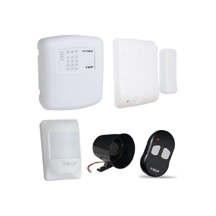 Kit Alarme Residencial Comercial ECP Central, Sirene, 2 Controle, 2 Sensor e Alard Max