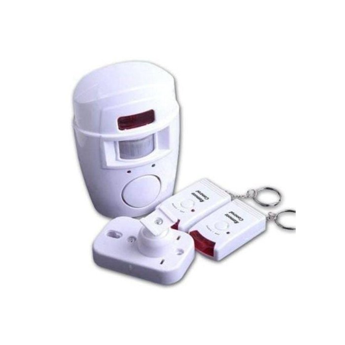 ESPECIFICAÇÕES: Alimentação do sensor: 4 pilhas AA ou uma fonte Alimentação dos controles: 3 baterias ag13 1,5V Possui led's que indica função (armado e desarmado) Capta movimentos por infravermelho Area de monitoramento: 5 metros X 120º INSTRUÇÕES: Fixe a base do sensor com a lente direcionada para local a ser monitorado Fixe o sensor na base Articulavel Acionando o controle remoto o alarme soara um bip e o Led verde ficara aceso (armado) permanecendo aceso por 17segundos até sua saida do local e apagando em seguida e permanecendo em estado de alerta (stand by) economizando energia. Ao entrar em alarme ele toca em torno de 50 segundos e armará novamente automatico e permanecerá em stand by ao entrar onde esta o alarme vc terá 5 segundos para desarma-lo INSTALAÇÃO: Fácil Instalar, não utiliza fios Pode ser fixado com parafusos a Base é articulada para maior mobilidade Componentes: 2 controles Remotos, 1 sensor de alarme, Base articulavel, 4 pilhas AA