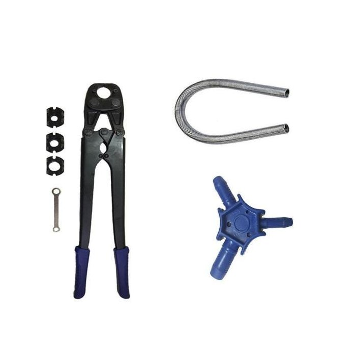 Kit Alicate Prensa tubo pex 16/20 e 26mm + Tesoura corta tubo + Escareador + Mola de curvar Tudogás