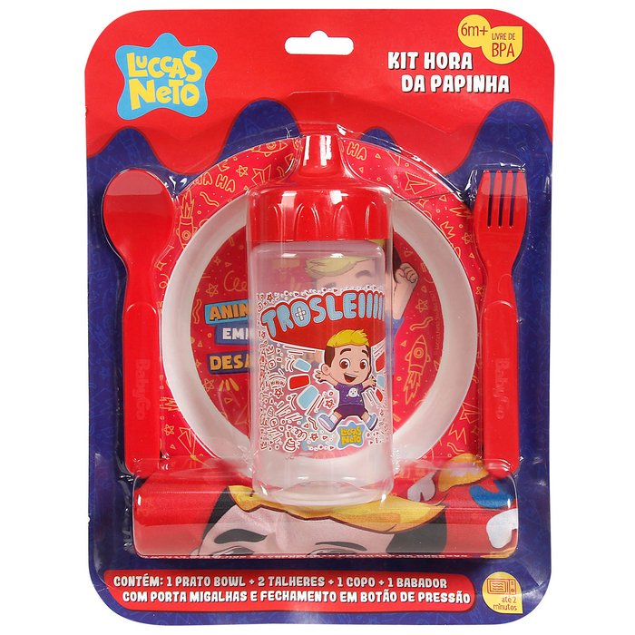 Kit Alimentação Infantil Bebê Com Prato Talheres Copo 240ml Hora da Papinha Luccas Neto BabyGo