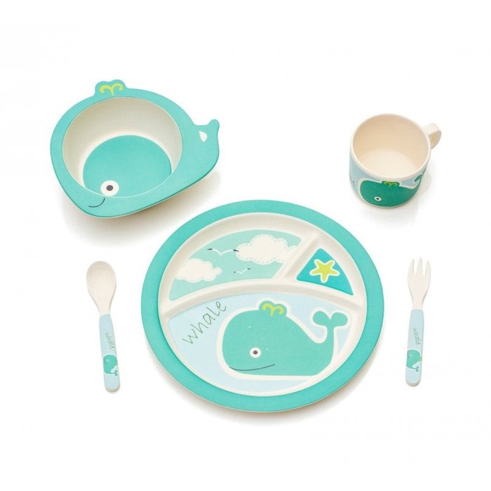 Kit Alimentação Infantil Fibra de Bambu Estampa Baleia