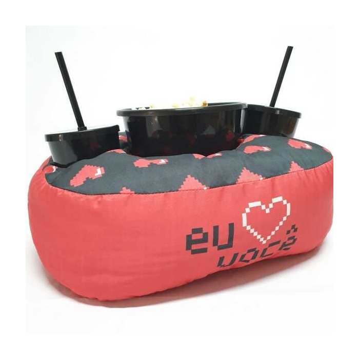 Kit Almofada Com Porta Pipoca 1 Balde + 2 Copos Amo Você APP3007