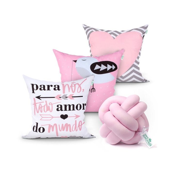 Kit Almofada para Cama Estampada Decorativa Rosa 3 Unidades 45cm x 45cm com Refil + Almofada Nó Esca